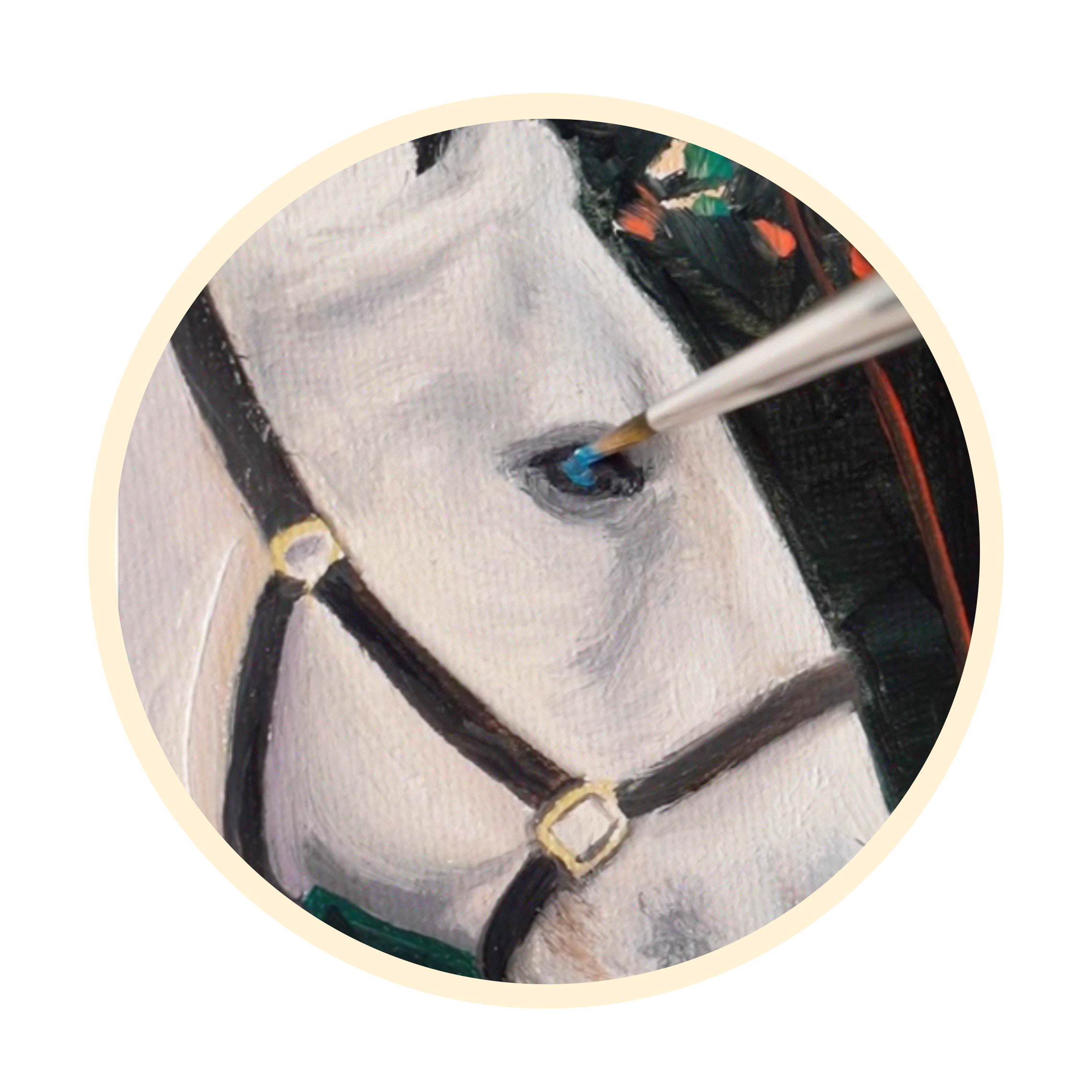 Each portrait is hand-painted in oil on fine-grained stretched canvas and thoughtfully tailored to your preferences. This ensures every piece faithfully reflects the original photo, capturing unique features and honoring your most cherished connections. Visible brushwork and rich textures are sealed with a glossy varnish for lasting vibrancy, making each artwork truly one of a kind.