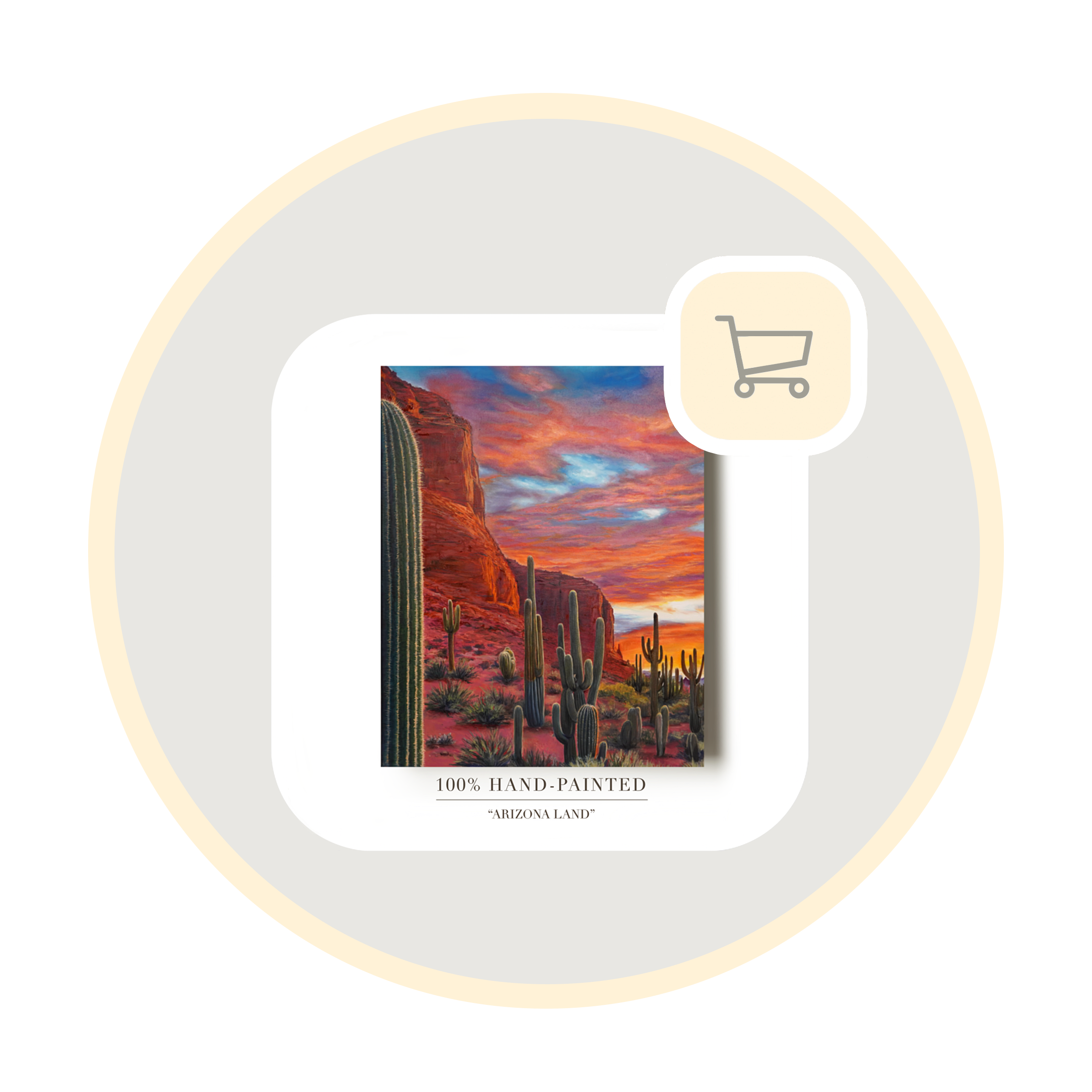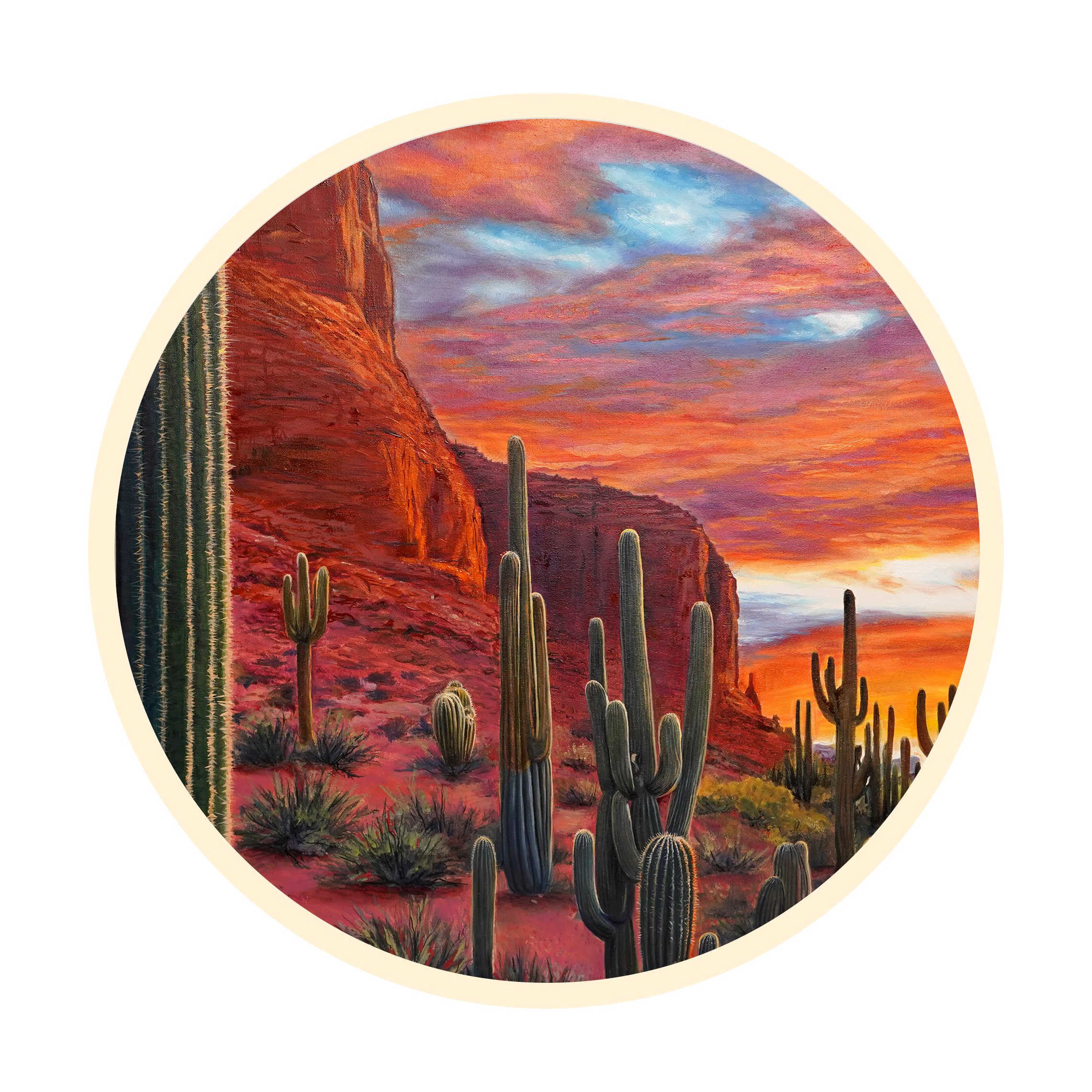 Hand-painted in oil on fine-grain stretched canvas, this Arizona landscape painting captures the natural beauty and atmosphere of the region. The visible brushwork and rich texture are sealed with a glossy varnish for lasting vibrancy, making this piece a truly one-of-a-kind, timeless artwork.