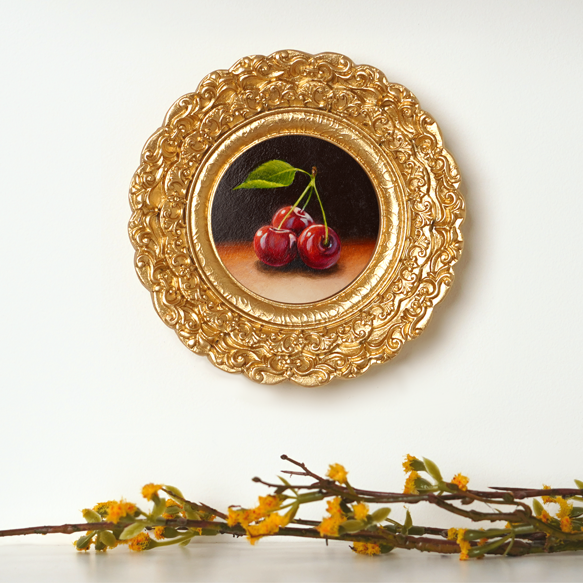 Hand-painted in oil on primed cardboard, this classic miniature still life captures the natural beauty and play of color, light, and form. Rich texture and visible brushwork are sealed with a glossy varnish for lasting vibrancy, making it a thoughtful gift and a charming accent for kitchen or dining room decor.