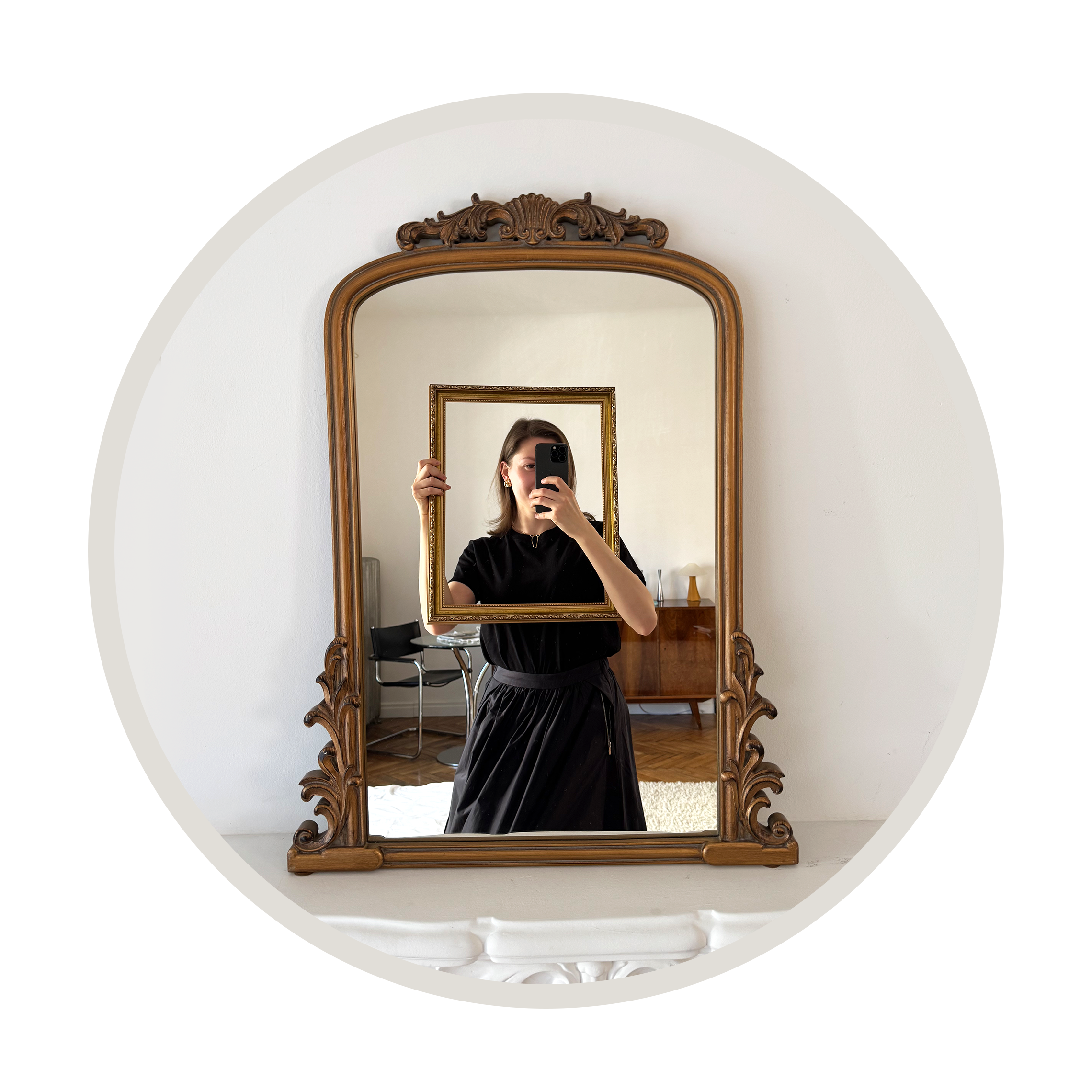 Frames: High-quality handcrafted pine wood with a durable gold finish, available in minimalist or vintage style.