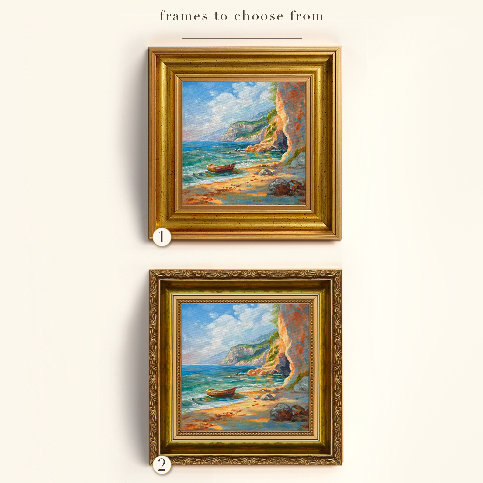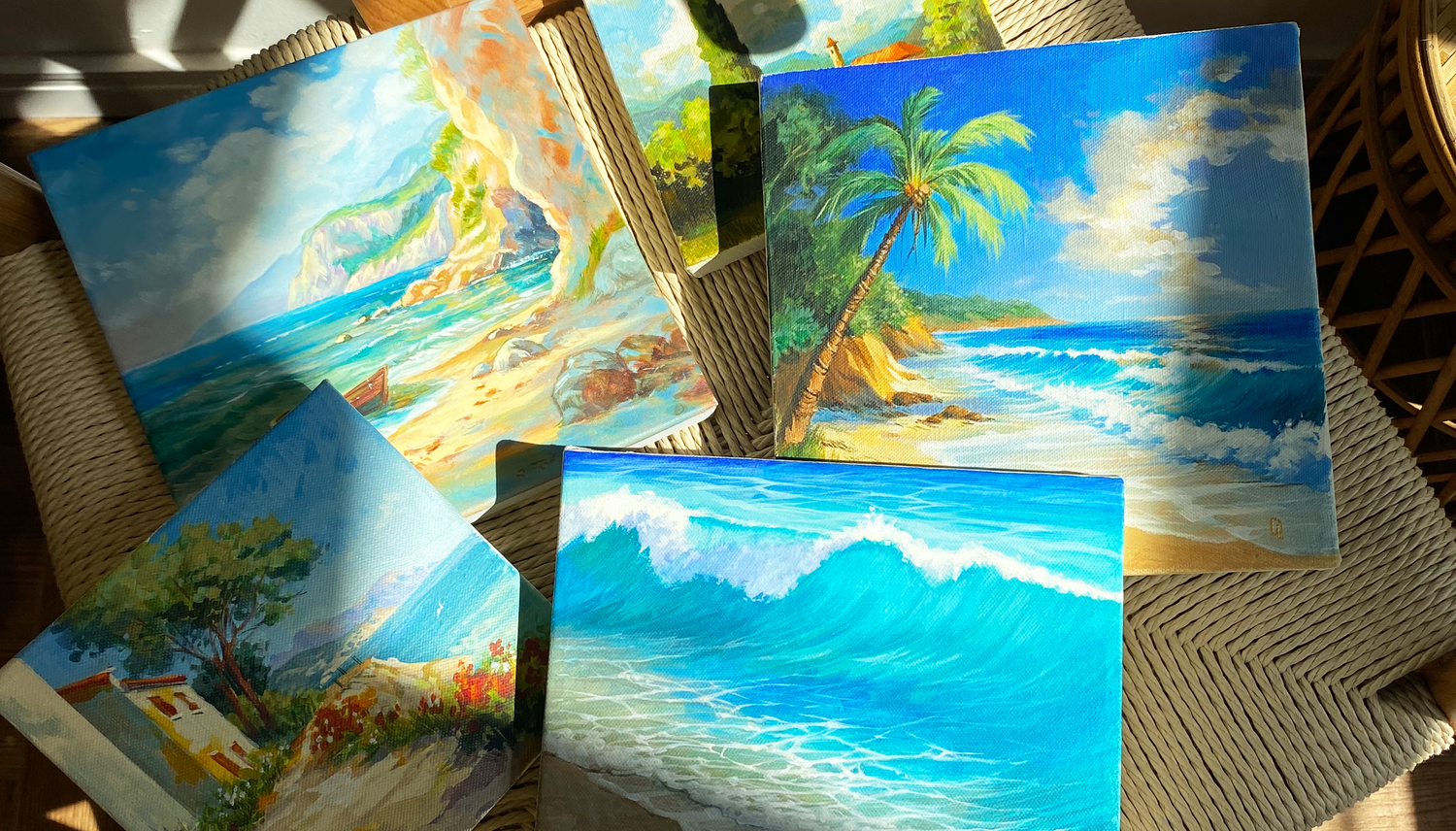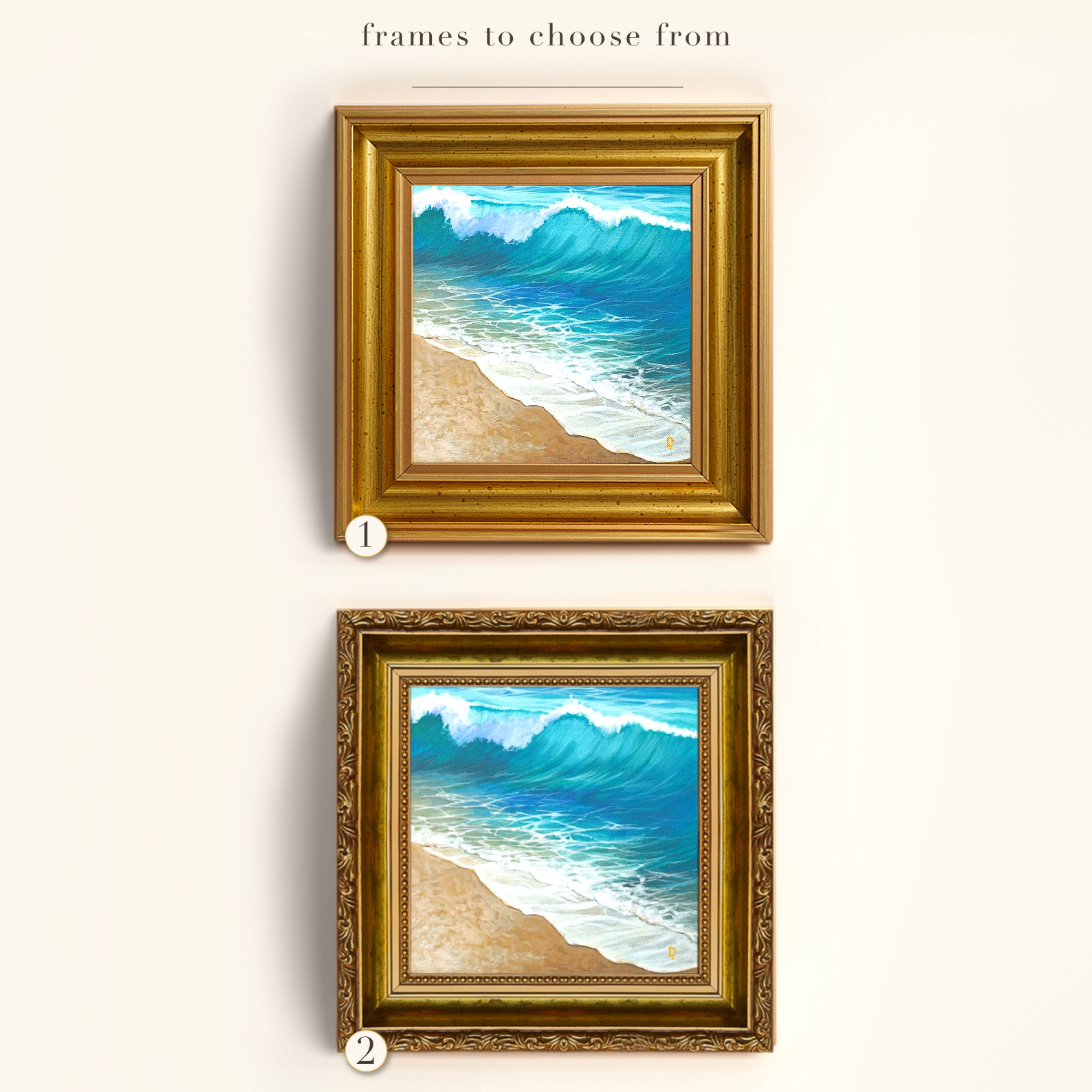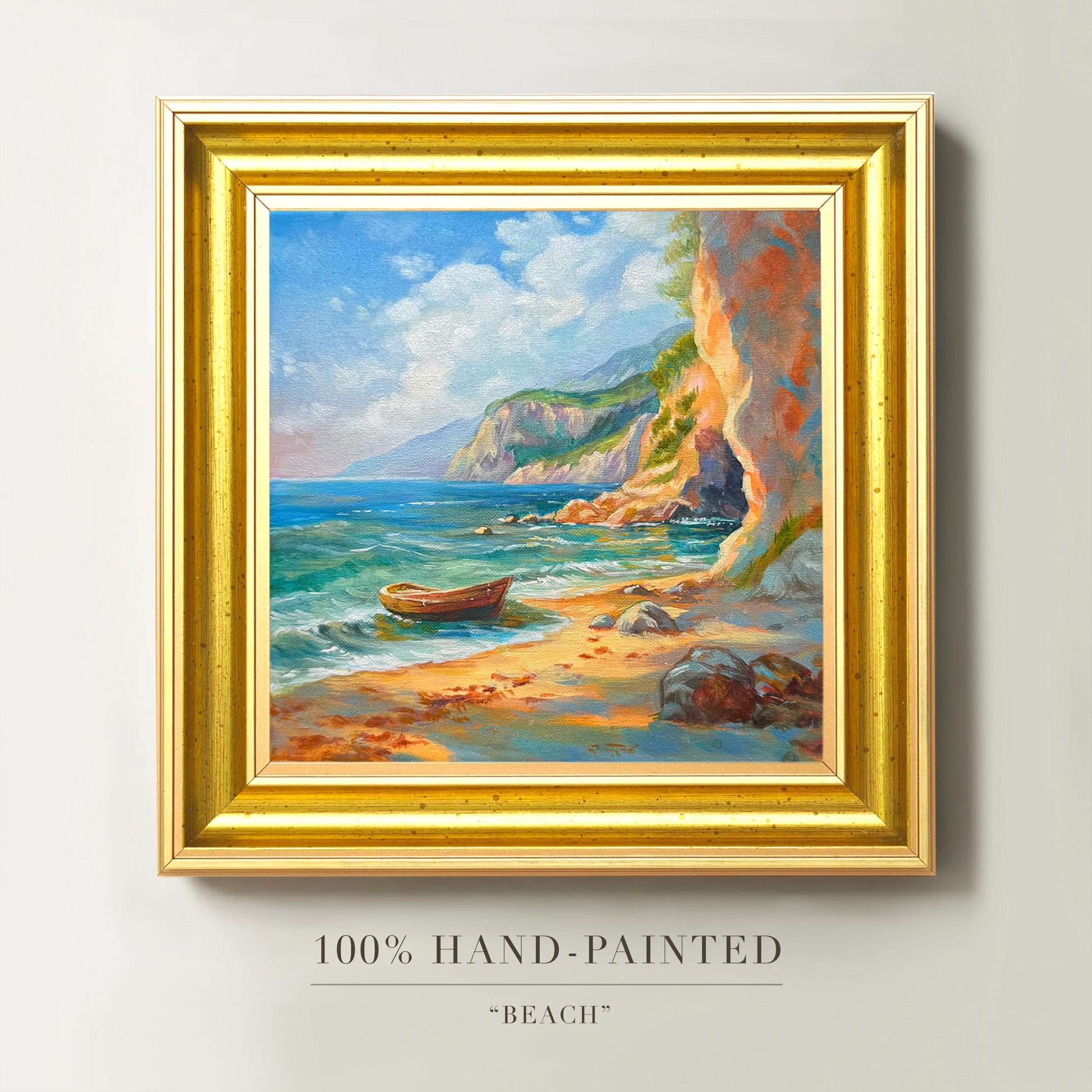 Hand-painted in oil on fine-grain canvas, these seascapes capture the serene beauty and fluid motion of light and color. Sealed with a glossy varnish for lasting vibrancy, their rich textures and visible brushwork make each piece a thoughtful gift and a striking accent for any room or coastal-inspired space.