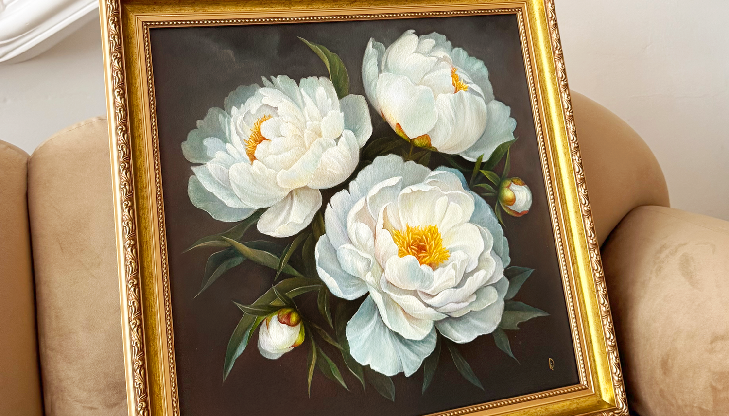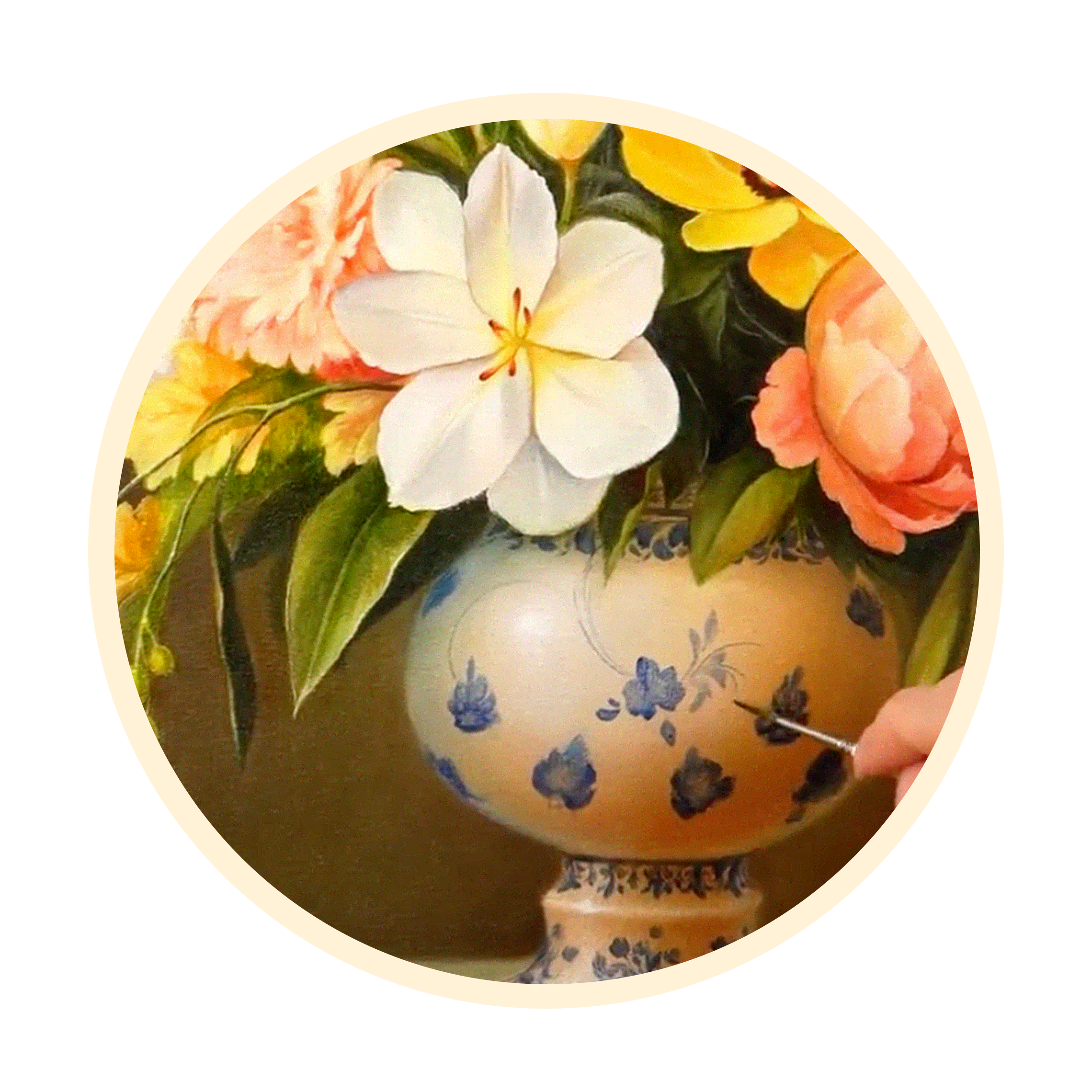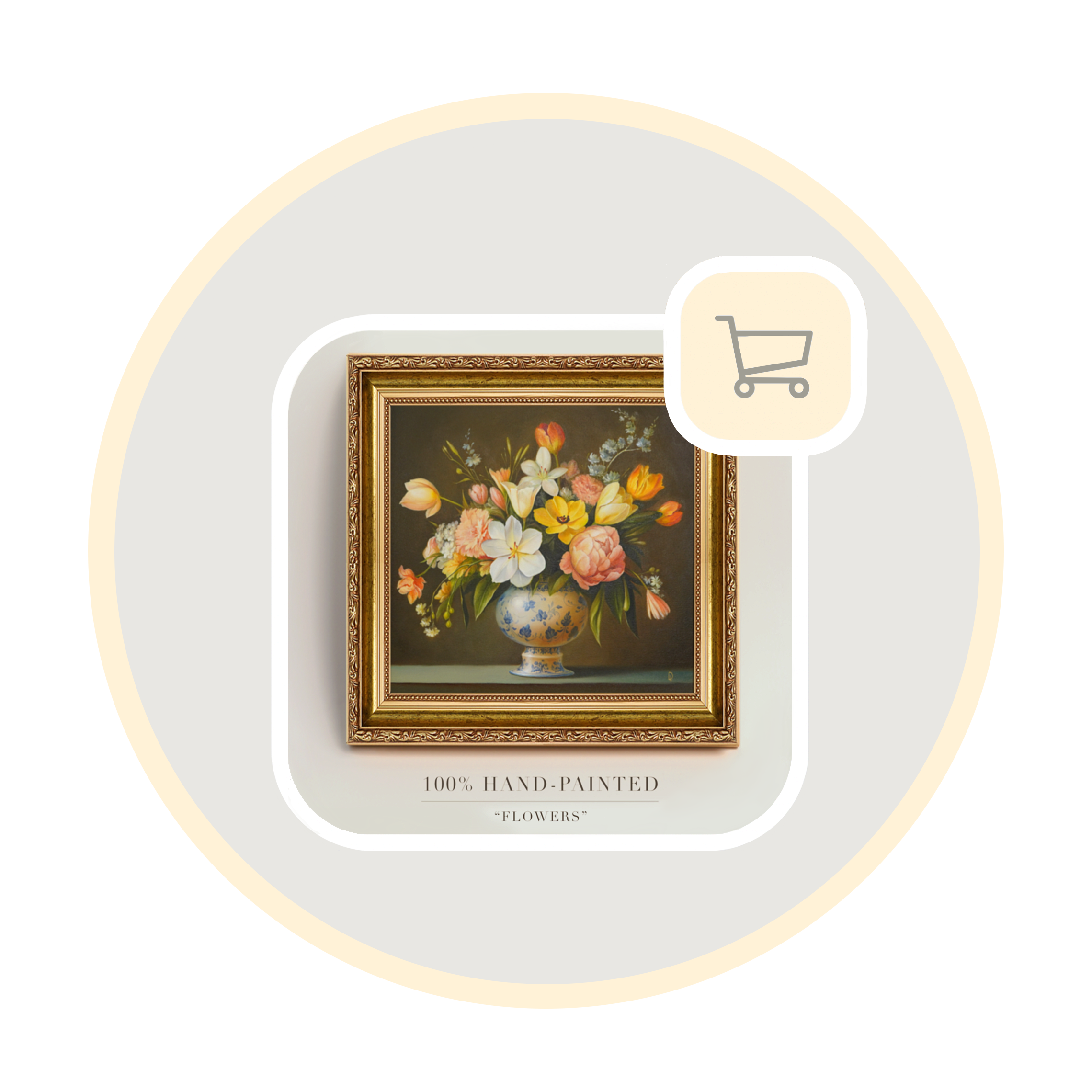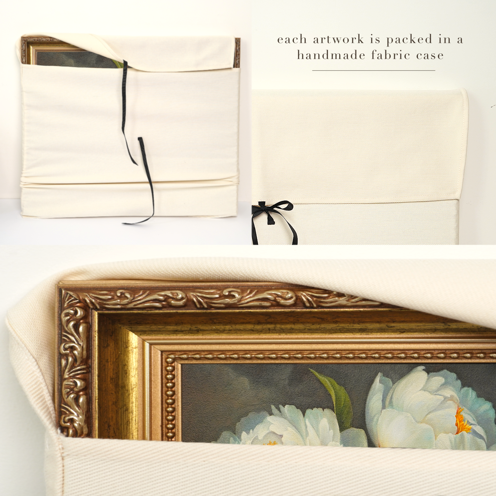 Hand-painted with oil on fine-grained stretched canvas, this floral still life is inspired by nature’s beauty. Visible brushwork and rich texture are sealed with a glossy varnish for lasting vibrancy, making each piece a truly one-of-a-kind and timeless gift.