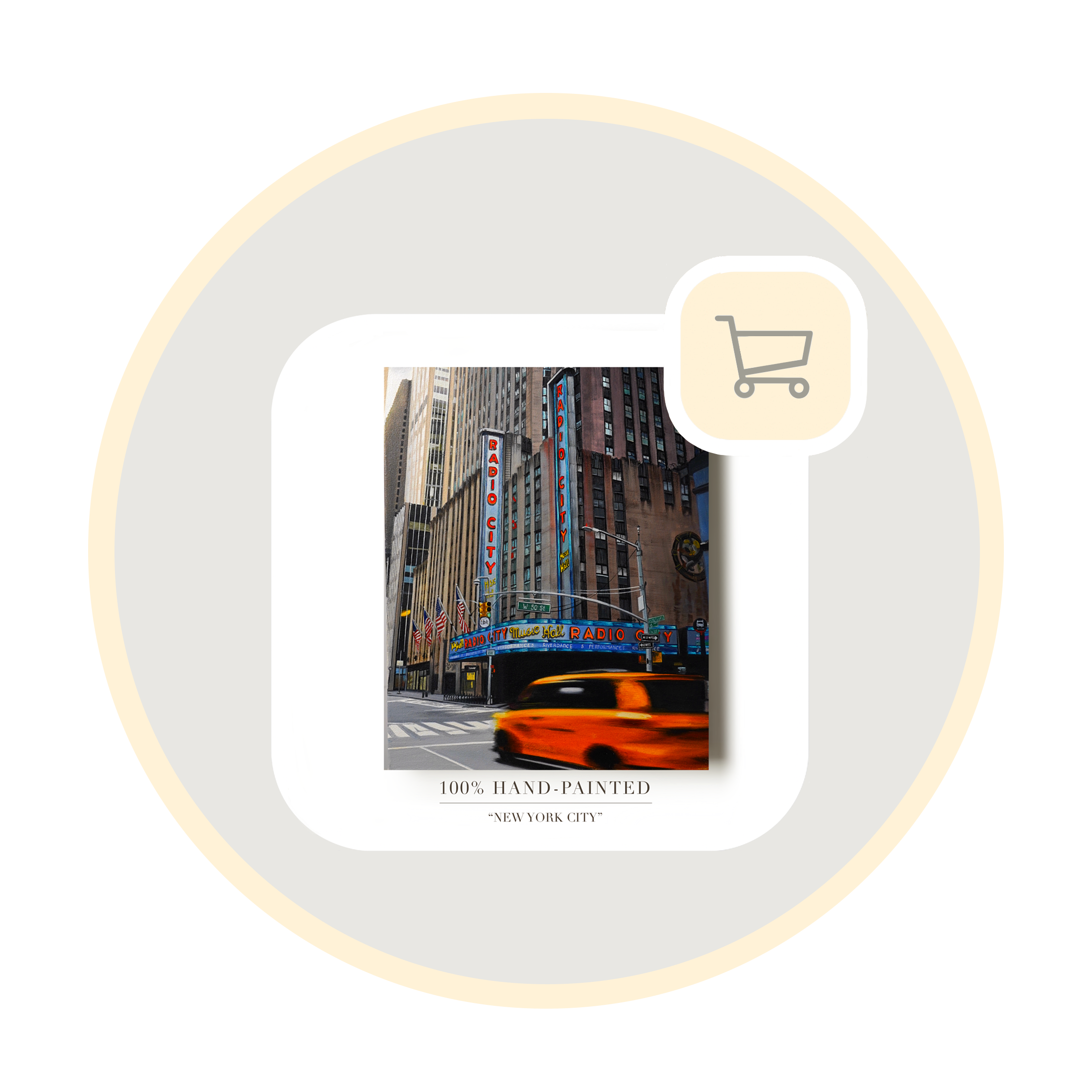 Hand-painted in oil on fine-grain stretched canvas, this New York City street painting captures the energy and atmosphere of the city. The visible brushwork and rich texture are sealed with a glossy varnish for lasting vibrancy, making this piece a truly one-of-a-kind, timeless artwork.